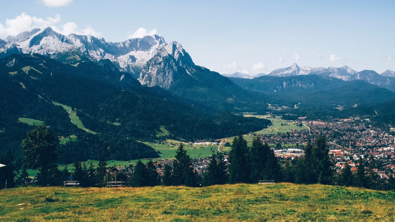 Die Zugspitze (2.962 m) - Deutschlands höchster Gipfel - sowie die umliegende Bergwelt bieten eine beeindruckende Kulisse.