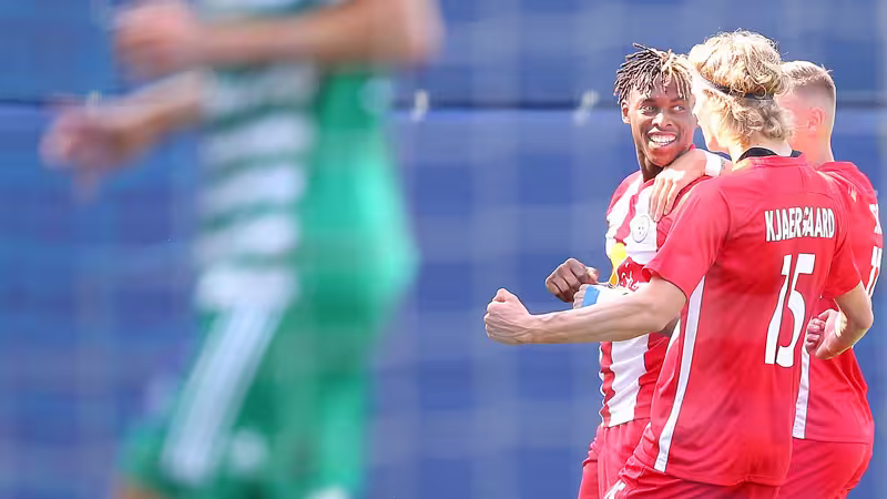 Unmittelbar vor dem Pausenpfiff legen die überlegenen Salzburger in Person von Benjamin Sesko nach - der Slowene staubt einen von Hedl nur kurz abgewehrten Ball aus kurzer Distanz ab.