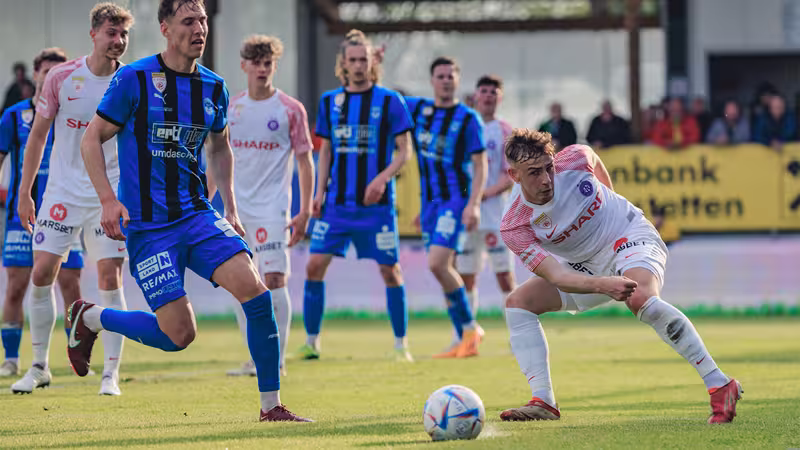 Den indirekten Freistoß vom Fünfer knallt Feiertag (90.+2) humorlos unter die Latte, womit Amstetten einen Punkt holt. Daran ändert auch die Rote Karte gegen Starkl (90.+3) nichts.