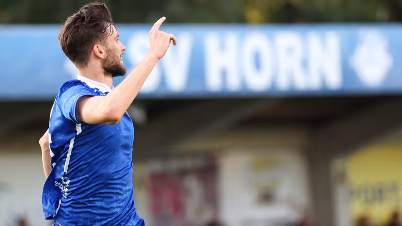 Nach einer guten halben Stunde hat der SV Horn Glück. Schiedsrichter Stefan Ebner übersieht ein vermeintliches Handspiel im Strafraum durch Alexander Joppich.