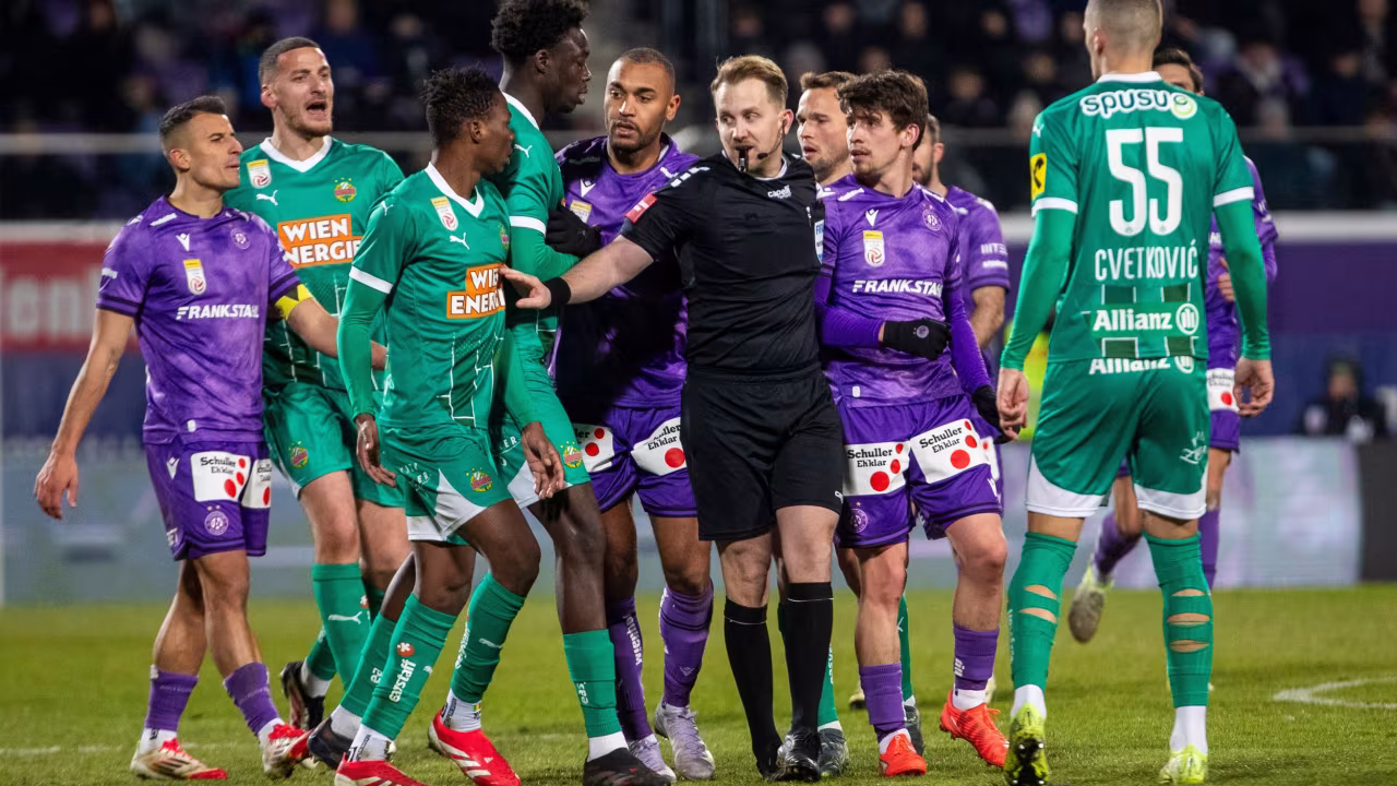 Zehn Punkte trennen die beiden Erzrivalen acht Runden vor Saisonende. Die Austria liegt gleichauf mit Tabellenführer Sturm auf Platz zwei, Rapid hat die Spitzenplätze als Fünfter nach zwei 0:2-Niederlagen in Graz sowie gegen Salzburg zum Meistergruppen-Auftakt bereits aus den Augen verloren.