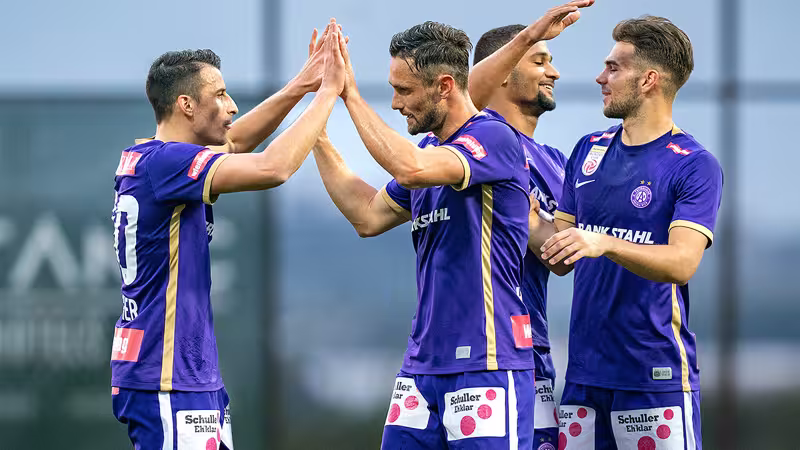 Den "Veilchen" gelingt ein guter Start in die Partie, in Minute 24 trifft James Holland per Traumtor zur Führung. Dem Australier fällt nach einer geklärten Ecke der Ball vor die Füße, Holland nimmt Maß und erzielt aus rund 25 Metern Entfernung das 1:0.