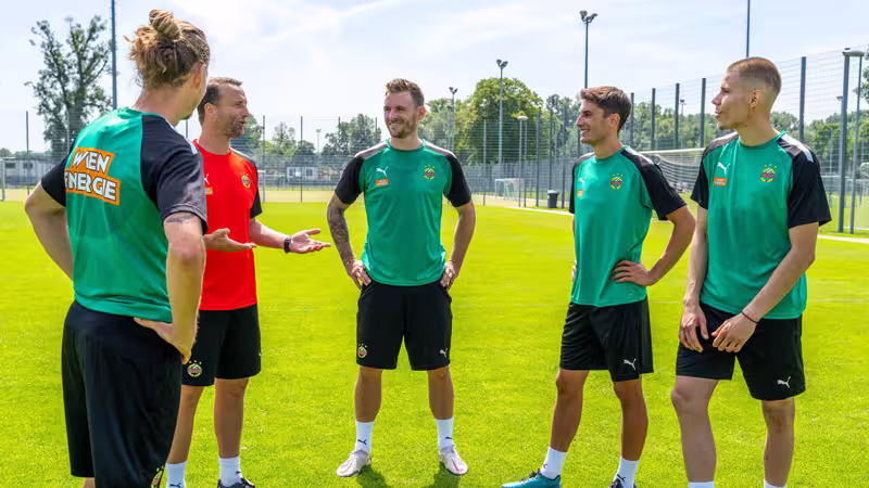 Schon diese Woche steht das internationale Testspiel gegen Celtic Glasgow (Samstag, 18 Uhr) auf dem Programm. Kommende Woche geht es schon am Freitag im ÖFB-Cup auswärts gegen den SK Treibach, eine Woche später starten die Wiener in die Conference-League-Quali gegen Legia Gdansk oder Akademija Pandev, bevor die Bundesliga losgeht.