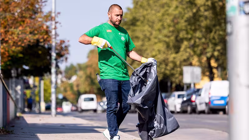 Aber nicht nur die beiden Partner sind in puncto Nachhaltigkeit strategisch gut aufgestellt, auch die grün-weißen Spieler Thorsten Schick und Aleksa Pejić, die beiden Geschäftsführer Steffen Hofmann und Marcus Knipping, Spieler des SK Rapid Special Needs Teams sowie zahlreiche Mitarbeiter zeigten im Rahmen der Aufräumaktion vollen Einsatz: Seite an Seite sammelten sie im Zuge des Coke Community Day rund um das Allianz Stadion im 14. Bezirk insgesamt 50 Müllsäcke zu 100 Liter Abfall.