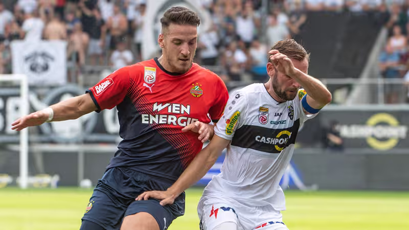 Sonst war von Rapid offensiv nichts zu sehen. Die Vorarlberger nahmen erst im Finish des ersten Durchganges an Fahrt auf und drückten da auf die Führung. Nuhiu setzte einen Kopfball nach Reiter-Eckball neben das Tor (40.) und einen weiteren Aufsetzer drüber (45.+5). Dazwischen war Sturmpartner Sandi Krizman noch näher dran am 1:0, scheiterte mit einem akrobatischen Fallrückzieher aber an der Latte (45.).