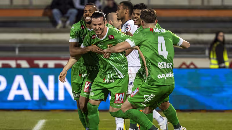 Es zeichnet sich eine Partie auf Augenhöhe ab, die Lustenauer mühen sich in Überzahl. Daher muss eine Standardsituation her - mit Erfolg für die Gäste! Lukas Fridrikas schlägt eine Ecke in den Sechzehner, wo Abwehrchef Jean Hugonet zum Kopfball hochsteigt und diesen ins linke Eck verwertet (64.).