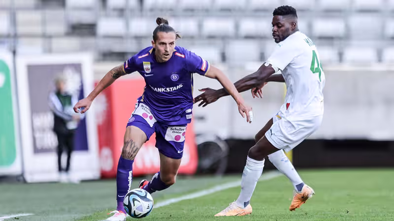 Die verdiente Führung für die Wiener stellt Asllani in Minute 33 her: Er bugsiert eine halbhohe Polster-Flanke mit dem Knie ins Tor. Am Ende der ersten Halbzeit erhöht die Austria den Druck weiter, Gruber scheitert aber an Tormann Stejskal (40.) und der aufgerückte Martins verfehlt aus spitzem Winkel (41.).