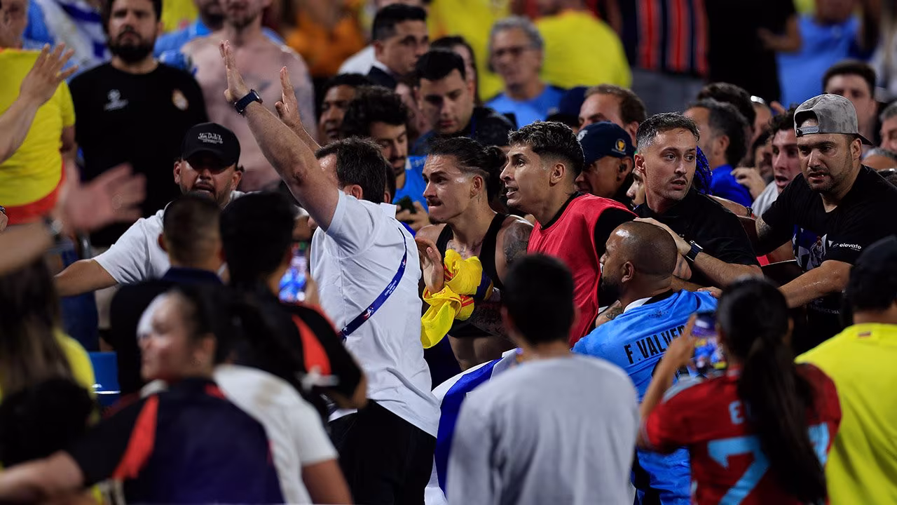 Zu unschönen Szenen kommt es nach Spielende. Dem Vernehmen nach kommt es zu Auseinandersetzungen zwischen betrunkenen kolumbianischen Fans und den Familien der Uruguay-Spieler. Daraufhin steigen die Spieler - allen voran Darwin Nunez - auf die Ränge und werden handgreiflich.