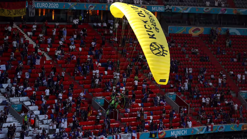 Hinter der Aktion stand die Umweltorganisation Greenpeace, die damit gegen den Sponsor Volkswagen protestieren wollte. Bei Twitter forderte Greenpeace in einem Post dazu von dem Konzern, keine klimaschädlichen Diesel- und Benzinautos mehr zu verkaufen. Die Umweltorganisation hat sich nach ihrer misslungenen Protest-Aktion entschuldigt. "Das tut uns wahnsinnig leid", sagte ein Sprecher der Organisation am Dienstagabend.