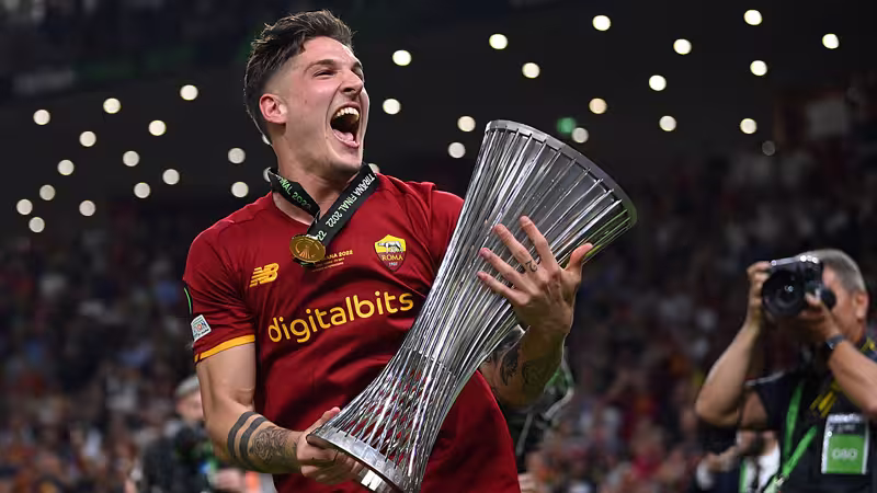 Dem italienischen Profi Nicolò Zaniolo von AS Roma kommt eine kleine Entgleisung bei der Titelfeier nach dem Gewinn der Conference League teuer zu stehen.