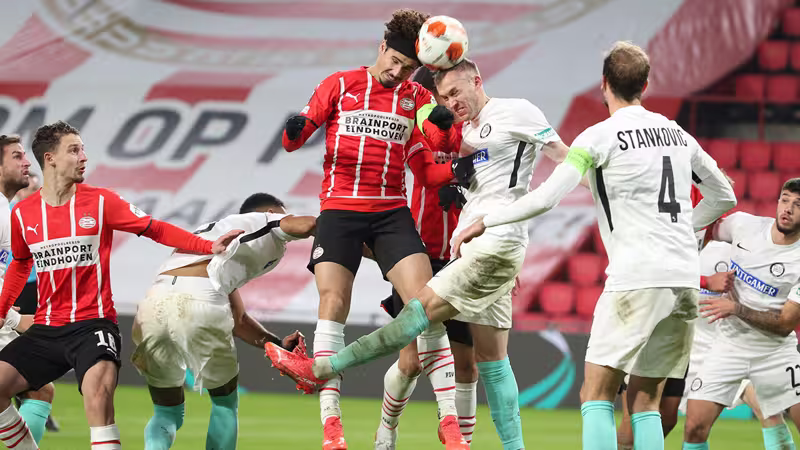 Dem niederländischen Spitzenteam fehlten an diesem Abend zahlreiche Leistungsträger - Eran Zahavi, Cody Gakpo und Philipp Max waren nur drei davon. Der Wiener Philipp Mwene spielte im wegen Corona-Maßnahmen leeren Philips Stadion als Rechtsverteidiger durch. Die Grazer verlegten sich in einem von Trainer Christian Ilzer selten ausgerollten 4-3-2-1-System zunächst darauf, im hintersten Drittel sicher zu stehen und die Räume eng zu machen.