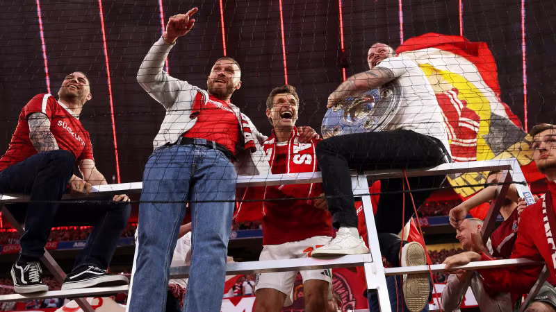 Müller schlägt bei seiner Abschiedsveranstaltung am "Sky"-Mikrofon aber auch ernstere Töne an. "Was wirklich super ist, dass wir heute hier die Meisterschaft überreicht bekommen. Wir haben letztes Jahr schon gelitten. Leverkusen hat es sich verdient. Aber es tut schon weh, wenn du die ganze Saison ackerst und dann mit leeren Händen dastehst."