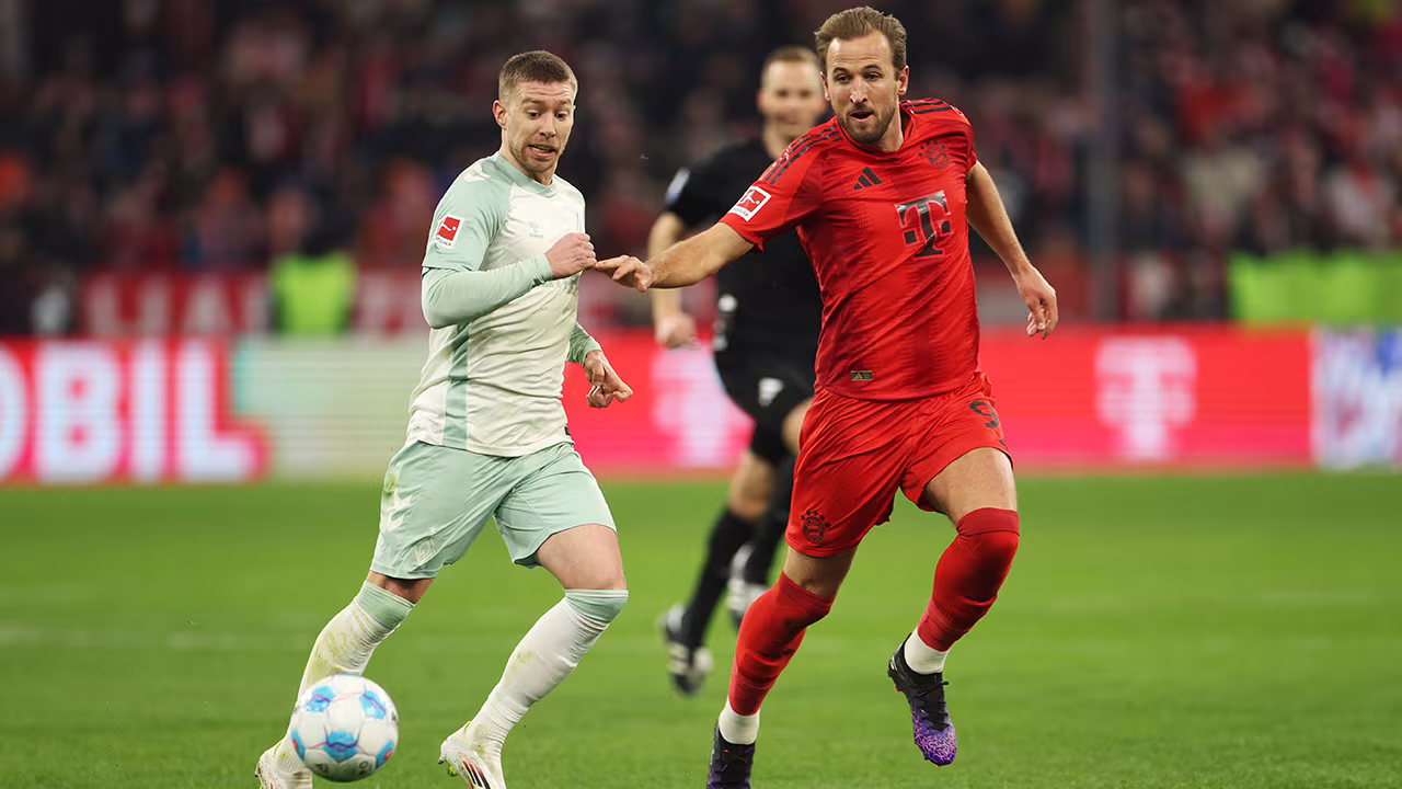 Durch Konter kommen die Bremer schon im ersten Durchgang zu vereinzelten Möglichkeiten. ÖFB-Legionär Grüll kommt im Rückraum (22.) zum Abschluss, abgefälscht geht die Kugel am Tor vorbei. Die beste Gelegenheit vor der Pause hat Kane (45.+1), eine Boey-Flanke köpft der englische Knipser nur hauchzart an der linken Stange vorbei.
