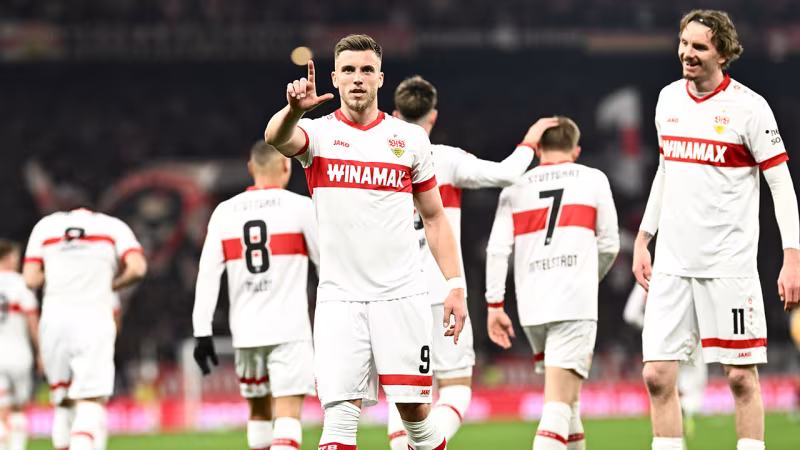 In einer hochklassigen Partie fehlt bis zur Pause noch die Masse an Chancen. Dafür nutzt der VfB gleich die erste klare. Woltemade hat im Sechzehner das Auge für Mitspieler Leweling. Dessen Abschluss wird zwar pariert, den Nachschuss drückt Demirovic schließlich über die Linie (15.).