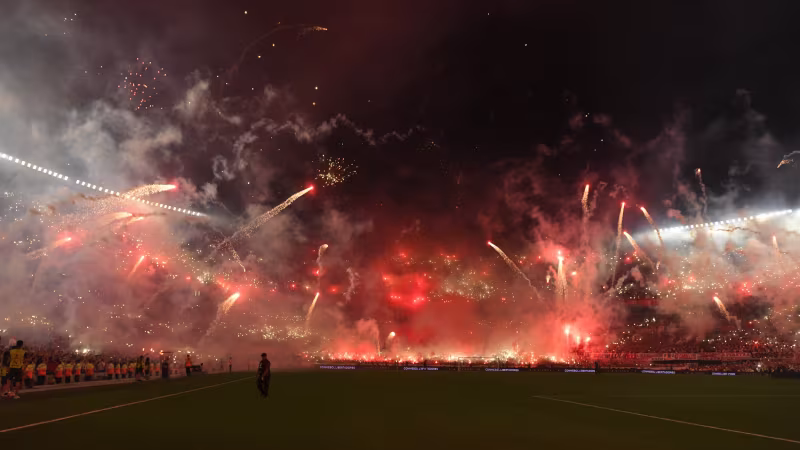Nicht nur weil das Spiel torlos endete, spielten sich die wahren Höhepunkte im Vorfeld der Partie ab - um ihrer Mannschaft Motivation für ein mögliches Comeback gegen die Gäste aus Brasilien zu verleihen, gestalteten die River-Fans ihrem Team einen unglaublichen Empfang. Rund 85.000 Zuseher färbten das Estadio Monumental mit einer Feuerwerk- und Pyro-Show in dunkelrot.