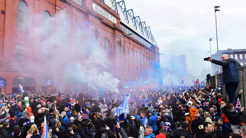 Auch die Fans ließen sich trotz Corona-Verordnungen nicht vom Feiern abhalten. Tausende Fans versammelten sich vor dem Ibrox-Stadion und feierten ausgelassen mit bengalischen Feuern.