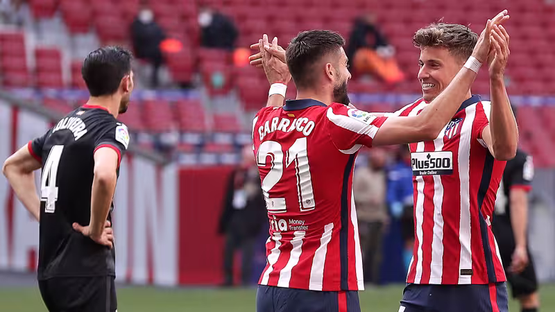 Ein Doppelpack von Angel Correa kurz vor der Pause (42., 44.) bricht das Eis. Kurz nach der Halbzeit sorgen Carrasco (49.) und Llorente (53.) für die Vorentscheidung zugunsten der Rojiblancos. Abermals Llorente trifft in der 68. Minute zum 5:0-Endstand.