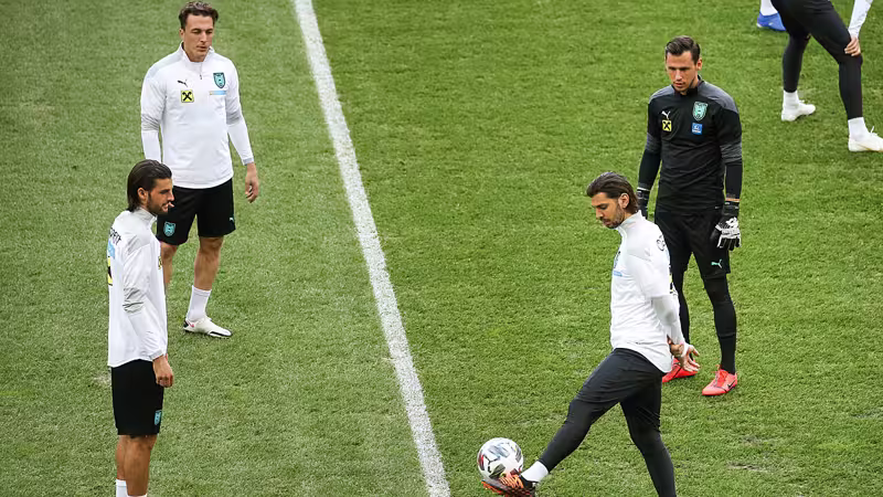 Ersatz: Lindner (Basel/28), Siebenhandl (Sturm Graz/2) - Ullmann (Rapid/0), Hinteregger (Eintracht Frankfurt/47/4), Lainer (Borussia Mönchengladbach/20/1), Baumgartner (Hoffenheim/2/1), Ilsanker (Eintracht Frankfurt/43/0), Onisiwo (Mainz/8/1), Ranftl (LASK/1/0), Grbic (Lorient/2/0), Gregoritsch (Augsburg/19/3), Kalajdzic (Stuttgart/0)