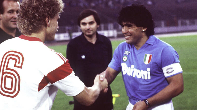 "Auf dem Platz wird das Leben unwichtig. Die Probleme, all das wird unwichtig", sagt er in der Amazon-Dokumentation "Diego Maradona". Mit Argentinien wird er 1986 Weltmeister, 1989 gewinnt er mit Neapel auch noch den UEFA-Cup.