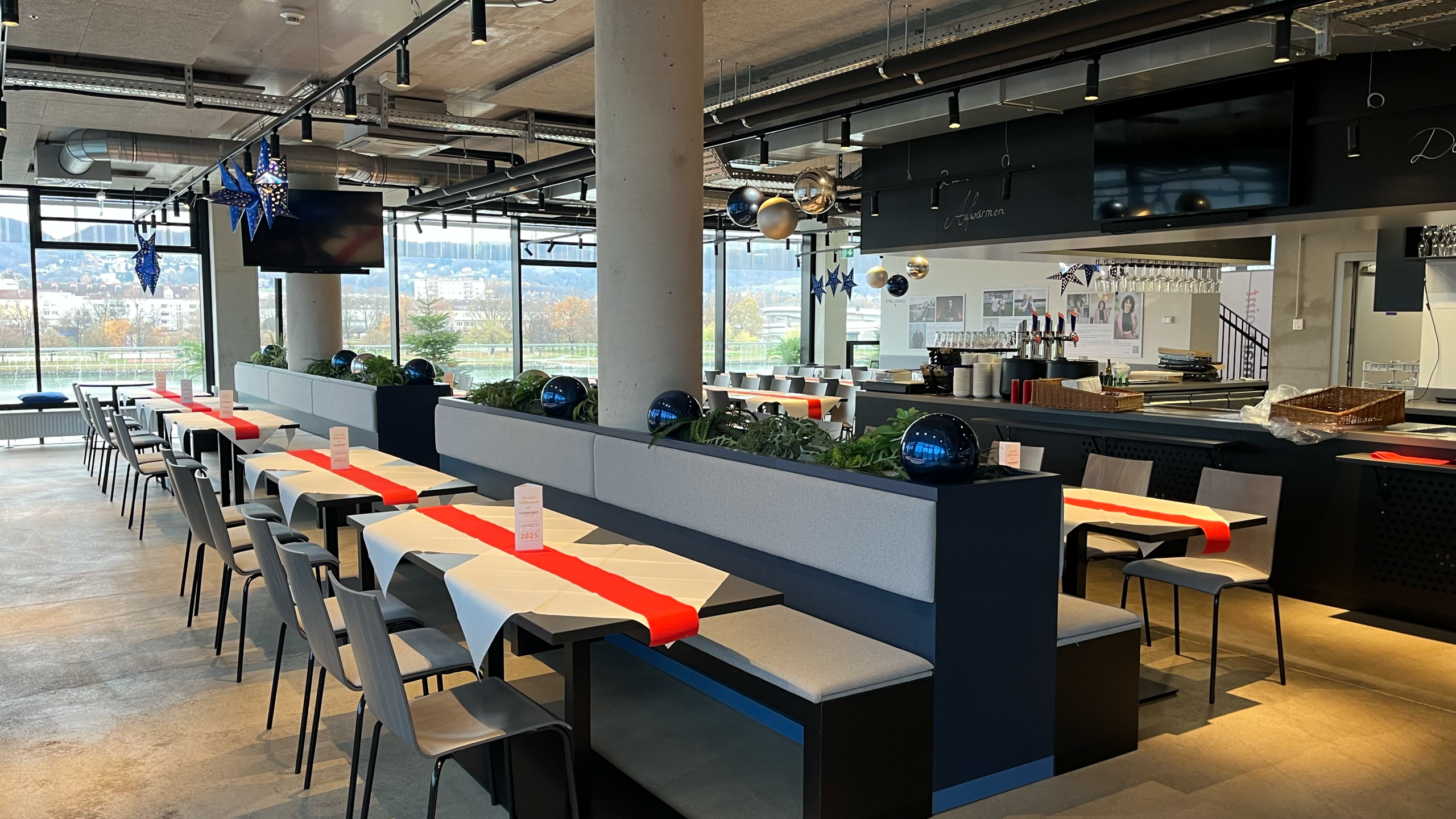 Ein großer VIP-Bereich mit Terrasse und einem traumhaften Blick über die Donau. Ideal für Firmenfeiern, Sponsorenevents – oder den eigenen 30er.