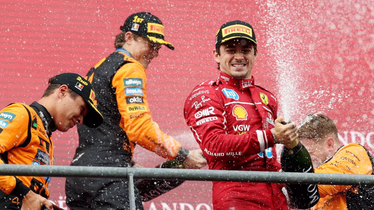 Oscar Piastri gewinnt den Großen Preis von Belgien vor seinem Teamkollegen Lando Norris. Das Rennen wurde wegen starken Regens mit über einer Stunde Verzögerung gestartet.