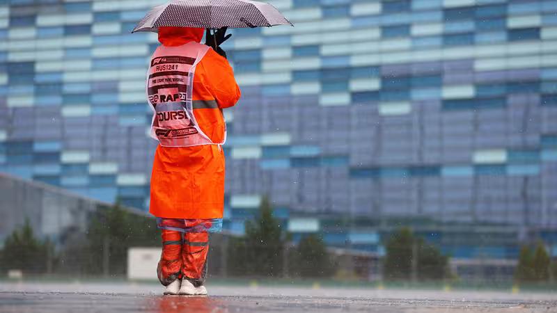 In der russischen Stadt am Schwarzen Meer gibt es aktuell derart heftige Niederschläge, dass die Sicherheit der Fahrer auf der Strecke nicht gewährleistet werden kann und das Fahren schlicht unmöglich ist.