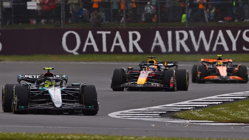 In der 17. Runde setzt dann der Regen ein und wirbelt die Positionen durcheinander, Norris und Piastri setzen sich an die Spitze, Verstappen fällt hinter Mercedes auf Rang fünf zurück.