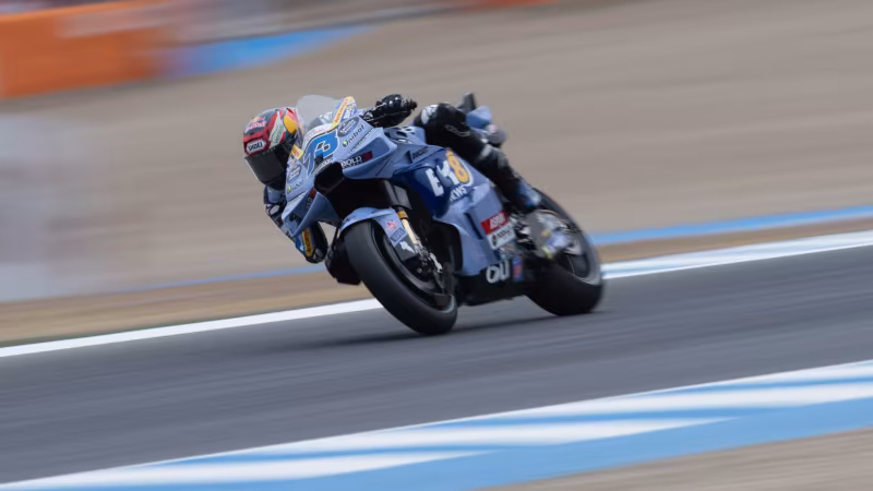 Für den MotoGP-Weltmeister, der am Samstag den Sprint gewonnen hat, ist das Rennen früh vorbei. Er verliert in Runde zwei die Front und fliegt heftig ab, scheint aber unverletzt zu sein.