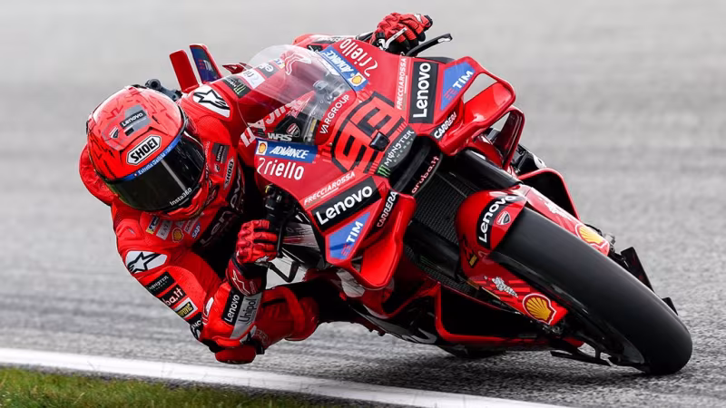 Der Spanier erobert den Sieg am Samstag vor Fabio Quartararo (Yamaha) und Fabio Di Giannantonio (VR 46). Dabei profitiert der Ducati-Pilot von einem Ausfall von Alex Marquez und setzt seinen Siegeslauf bei den Sprintrennen fort.