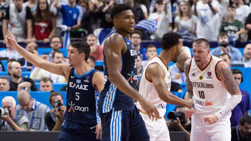 Es sollte das letzte Highlight aus der Sicht des zweifachen Europameisters bleiben. Denn im dritten Abschnitt legt das DBB-Team binnen sechs Minuten einen vorentscheidenden 20:1-Lauf aufs Parkett. Selbst Antetokounmpo wirkt in dieser Phase ratlos. Bei seinem Team geht kaum mehr etwas. Dennis Schröder (Houston Rockets) führt Deutschland mit 26 Punkten und acht Assists an. Knapp vier Minuten vor Schluss muss er nach seinem zweiten technischen Foul in die Kabine.
