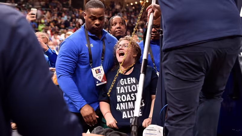 She chained herself to the basket stanchion pic.twitter.com/fAbi6uREdR