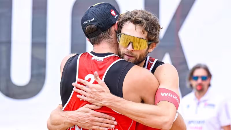 Das ÖVV-Duo besiegte am Sonntag im Halbfinale die britisch-spanischen Zwillingsbrüder Javier und Joaquin Bello nach Satzrückstand noch 2:1 (-18,14,13) und feierte den größten gemeinsamen Erfolg auf der Tour.