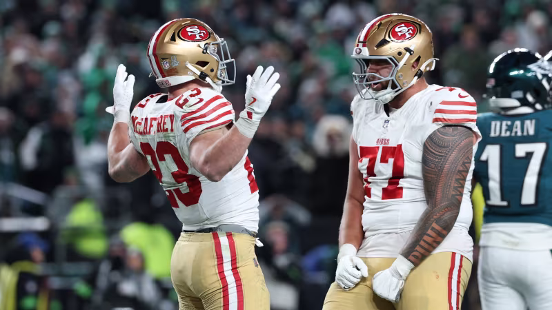 Die San Francisco 49ers bleiben eines der großen Überraschungsteams der Saison. Überraschungsteam deshalb, weil sie bereits seit Saisonbeginn auf etliche Schlüsselspieler verzichten müssen. Mit Nick Bosa und Fred Warner fehlen die zwei besten Verteidiger seit mehreren Monaten, auch Brock Purdy musste in der Regular Season lange pausieren. Nun fällt auch George Kittle für die restliche Saison aus. Der Tight End zog sich am Sonntag einen Achillessehnenriss zu.