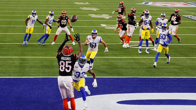 Daher sehe ich die besten Spieler auf Seiten der Rams in der Offense und dort in Tee Higgins und Joe Mixon. Tee Higgins, seines Zeichens 2nd Round Pick aus dem Jahr 2020, hat ein ausgezeichnetes Spiel mit 4 Receptions bei 7 Targets und 100 Yards, dazu waren 2 der 4 gefangenen Pässe Touchdowns. Diese Zahlen können sich sehen lassen.