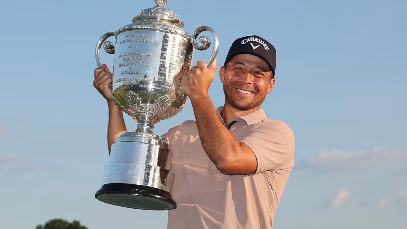 Der Norweger Viktor Hovland kam mit 18 Schlägen unter Par auf Rang drei. Der Weltranglistenerste Scottie Scheffler beendete den Wettkampf im Valhalla Golf Club in Louisville nach turbulenten Tagen und einigen Stunden in Polizeigewahrsam mit 13 Schlägen unter Par auf dem geteilten achten Platz.