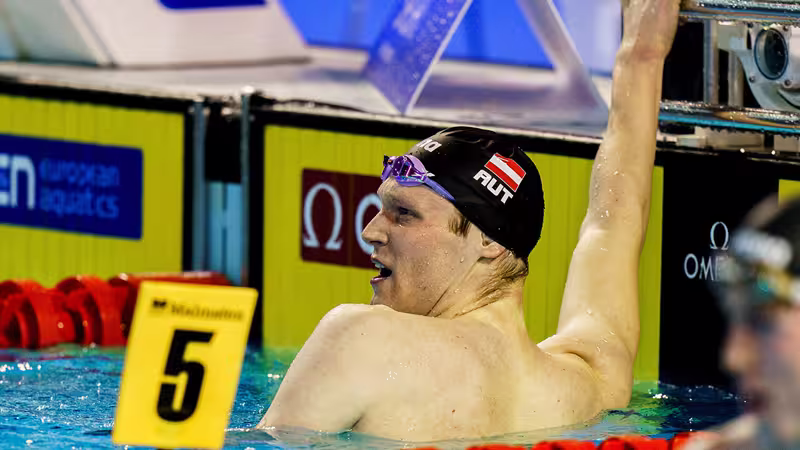 Im Semifinale über 100 m Delfin ist für Lukas Edl Endstation. Der EM-Debütant darf nach Rang 15 im Vorlauf aber schon das als Erfolg verbuchen, im Halbfinale belegt er in 51,61 Sek. Platz 14.