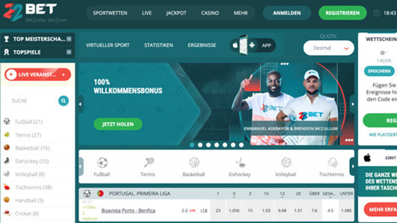 - 22Bet– einer der besten Wettanbieter;