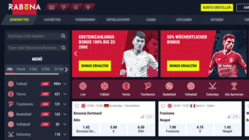 - Rabona– Sportwetten und online Casino;