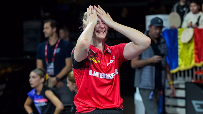 Sofia Polcanova gewinnt mit ihrer rumänischen Partnerin Bernadette Szöcs das Doppel-Viertelfinale der Tischtennis-Weltmeisterschaft in Doha mit 3:1 (7,8,-4,10) gegen die Deutschen Wan Yuan/Sabine Winter.