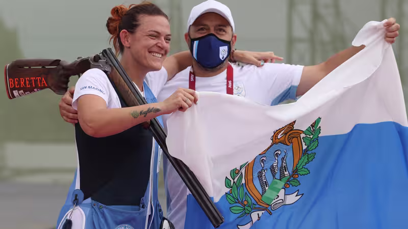 San Marino win their first ever Olympic medal as Alessandra Perilli secures bronze in the #Shooting trap women's final.@ISSF_Shooting @nocsanmarino #SMR pic.twitter.com/4js8ycGj9h