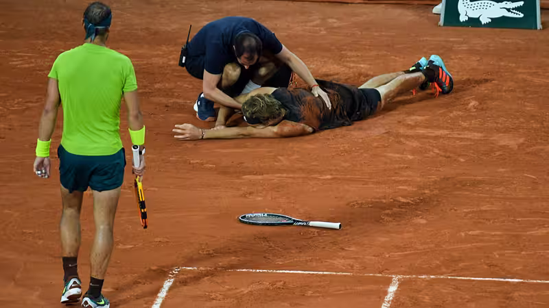 Zverev war am Freitag in Paris im Halbfinale gegen den Spanier Rafael Nadal mit dem rechten Fuß umgeknickt und hatte die Partie im Stade Roland Garros aufgeben müssen. Am Samstag teilte der Olympiasieger mit, das er sich mehrere Seitenbänder im Fuß gerissen habe.