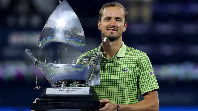 Nachdem Medvedev das Turnier in Dubai gewonnen hatte, saß er aufgrund eines Flugverbots mit anderen Profis in der Wüstenmetropole fest.