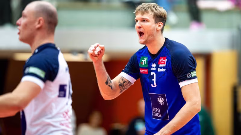 Meister Hypo Tirol lässt Aich/Dob im Schlagerspiel der fünften Runde der Volleyball-Männerliga in Bleiburg keine Chance.