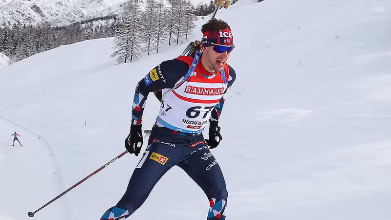 Beim Gesamtweltcup-Führenden Johannes Thinges Boe bleiben über alle vier Schießeinlagen verteilt insgesamt zwei Scheiben stehen, mit 1:14,9 Minuten Rückstand wird er hinter dem Franzosen Eric Perrot (1 Fehler/+1:06,4 Min.) Fünfter.