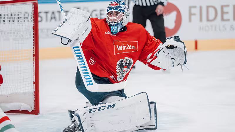 "Aber eigentlich bin ich von der U20 direkt zu den Profis, was am seltensten der Fall ist und sicher nicht der beste." Für den ÖEHV-Goalie fehlt der Zwischenschritt, wie es ihn beispielsweise in der deutschen Oberliga (dritte Leistungsstufe, Anm.) gibt.