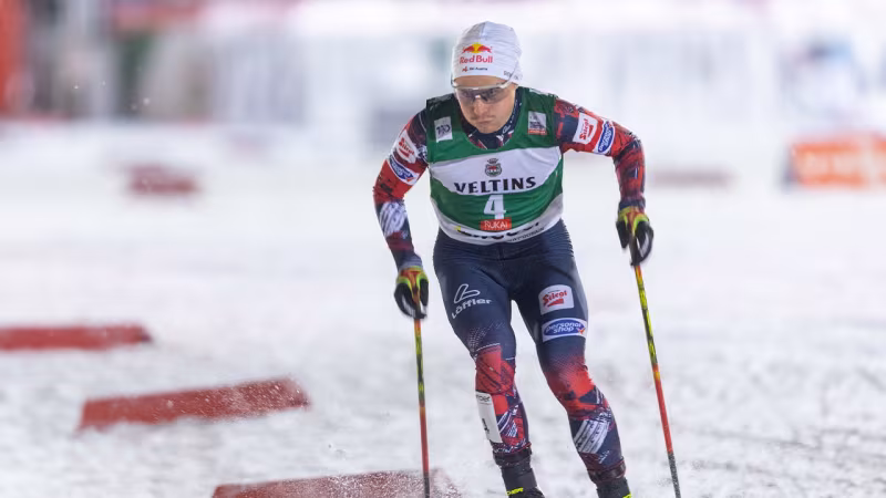 Der Tiroler setzt sich am Sonntag vom dritten Zwischenrang nach dem Springen vor Topstar Jarl Magnus Riiber aus Norwegen durch, den er in der Schlussphase des 7,5-km-Langlaufs abhängt.