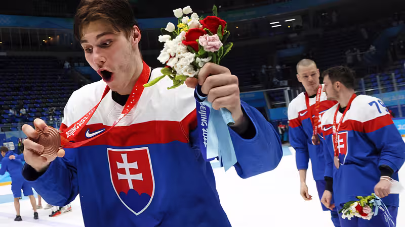 Neben den Finnen, die erstmals Olympia-Gold erobern, darf sich auch der erst 17-jährige Slowake Juraj Slafkovsky über den größten Erfolg seiner noch jungen Karriere freuen.