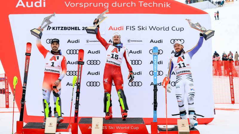 Kitzbühel-Slalom: Bilder der Siegerehrung mit Manuel Feller