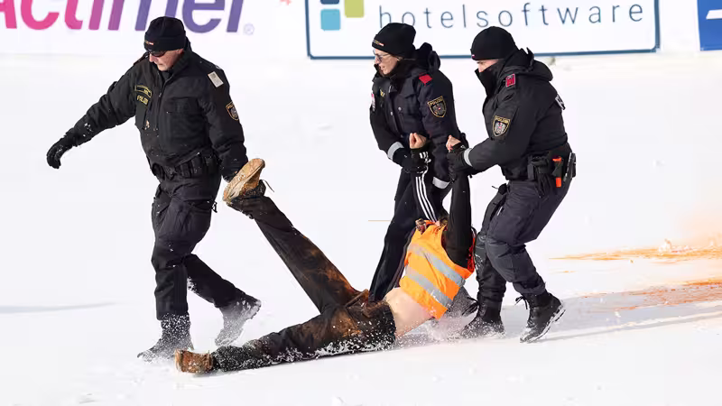 Ihr Kollege stimmte zu und outete sich selbst als Skifahrer: "Wir lieben Skifahren und ich würde auch in 30 Jahren und mit meinen Kindern noch gerne Skifahren können." Man habe zudem versucht, die Protestaktion ohne Gefahr für die Athleten abzuwickeln. "Wir haben geschaut, dass wir im Zielbereich sind und nicht in der Strecke stören."