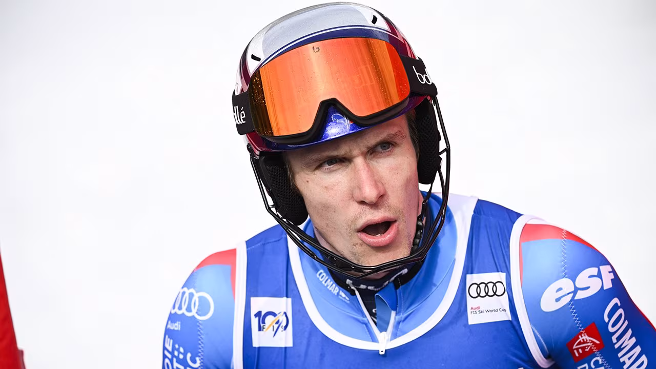 Der Franzose kommt im ersten Durchgang des Weltcup-Riesentorlaufs in Val d'Isere unglücklich zu Sturz. Er touchiert im Steilhang ein Tor, verliert die Kontrolle und schlägt dann mit viel Wucht ins Netz ein.